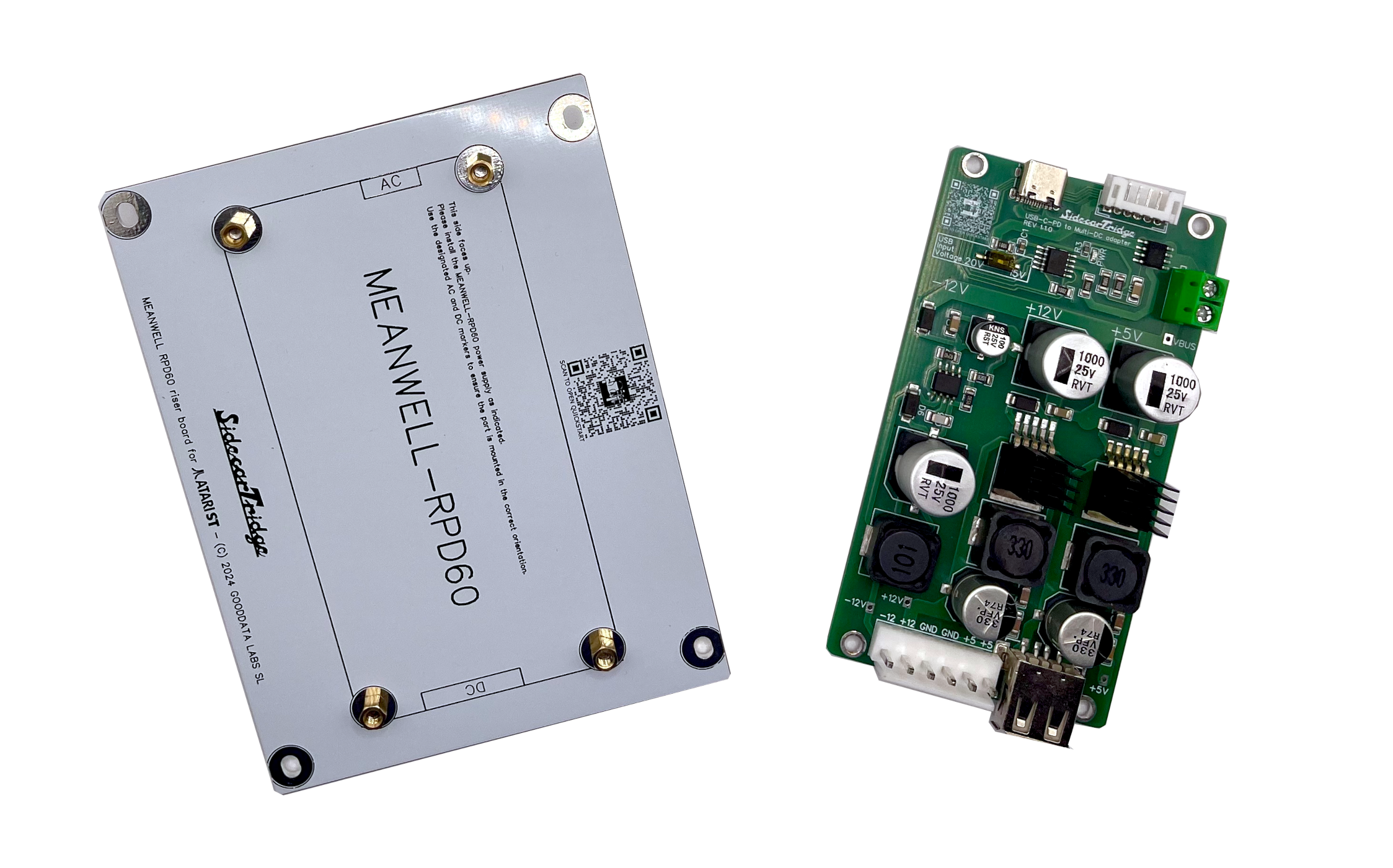- Riser PSU PCB for the USB-C PD Multi-Rail board, sized to the original PSU mounting points. It shares the mechanical layout with the Solderless PSU Kit that uses the Mean Well RPD-60A AC/DC supply.