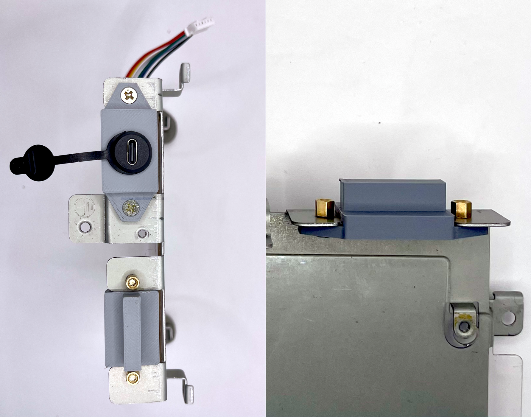 Insert the 3D-printed USB-C PD inlet cover into the original AC inlet slot. Secure it with the original screws.